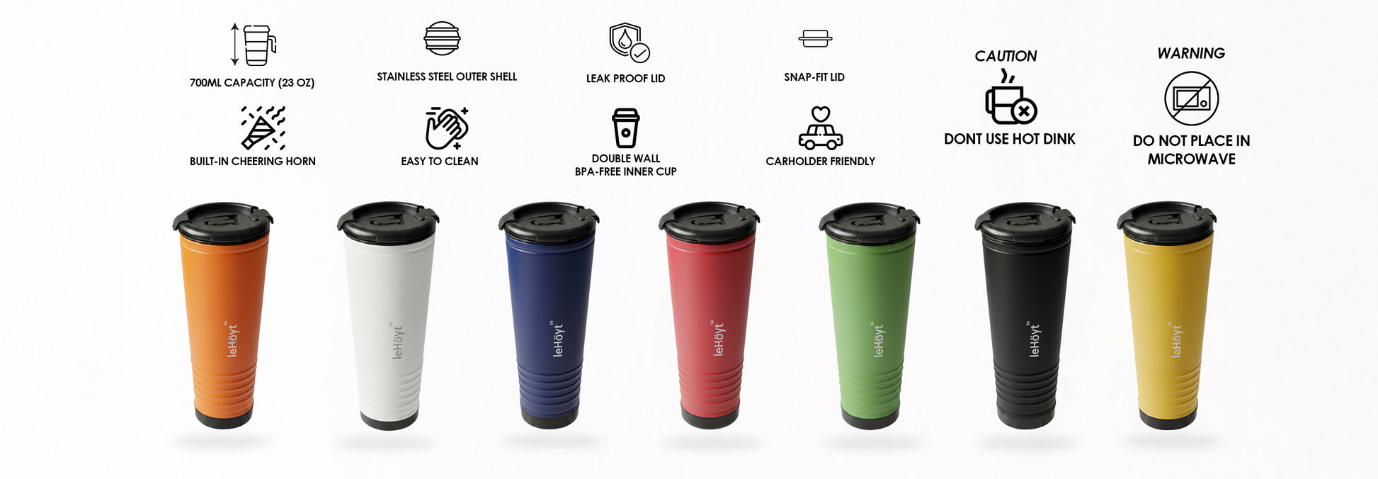 Get ready to be the most energized, passionate fan out there with The LEHØYT™ Cheering Cup! This insulated cup is your ideal companion for any occasion, whether you’re at a sporting event, tailgate, or enjoying a day outdoors. It's expertly crafted with a durable stainless steel outer shell and a BPA, BPS, PVC, latex, and phthalate-free inner shell, ensuring your beverages are safe and free from harmful chemicals. The tapered design features a "SNAP-FIT" lid that is 100% leak-proof, providing a secure seal perfect for on-the-go lifestyles.